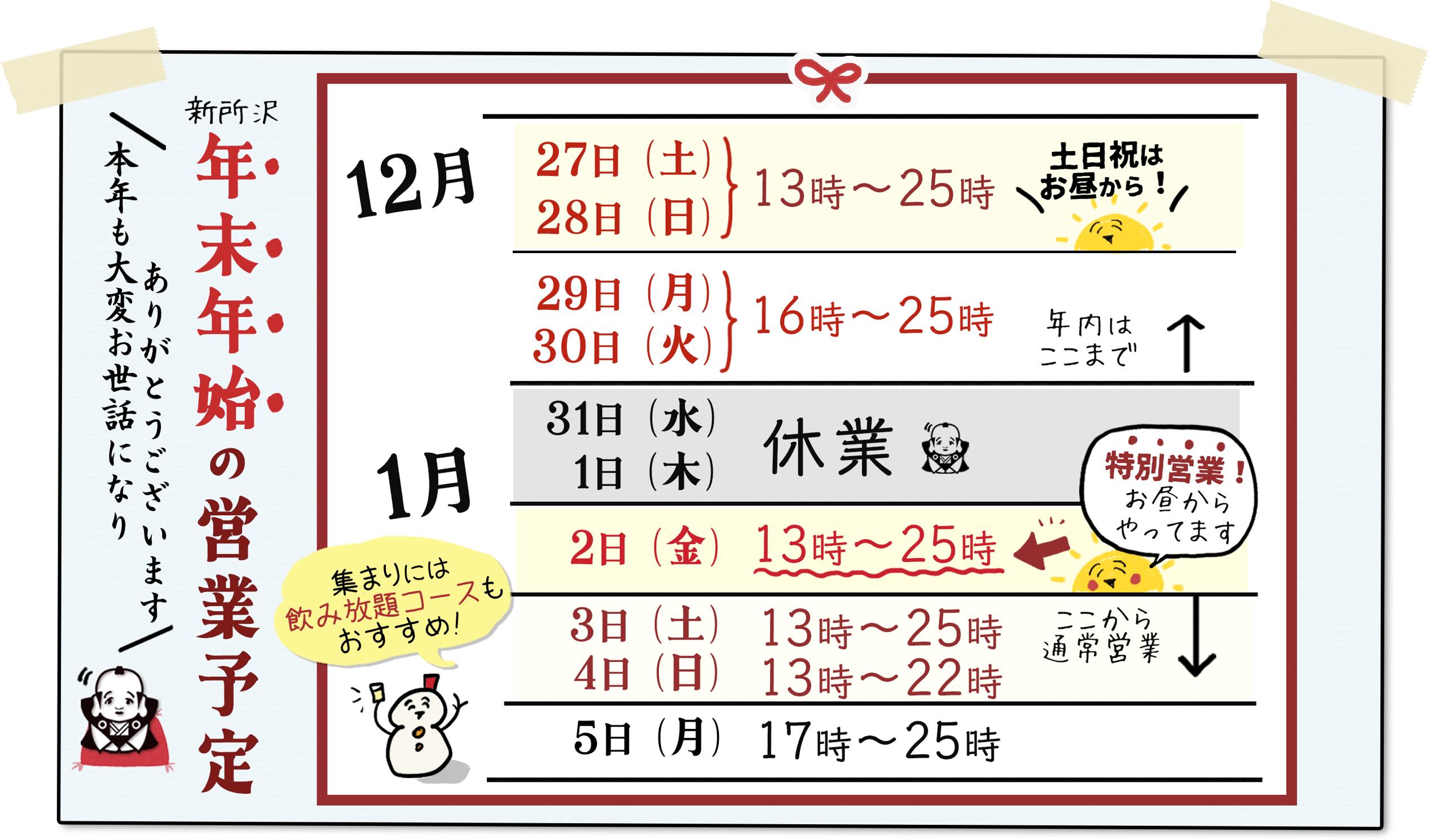 年末年始・営業のお知らせ